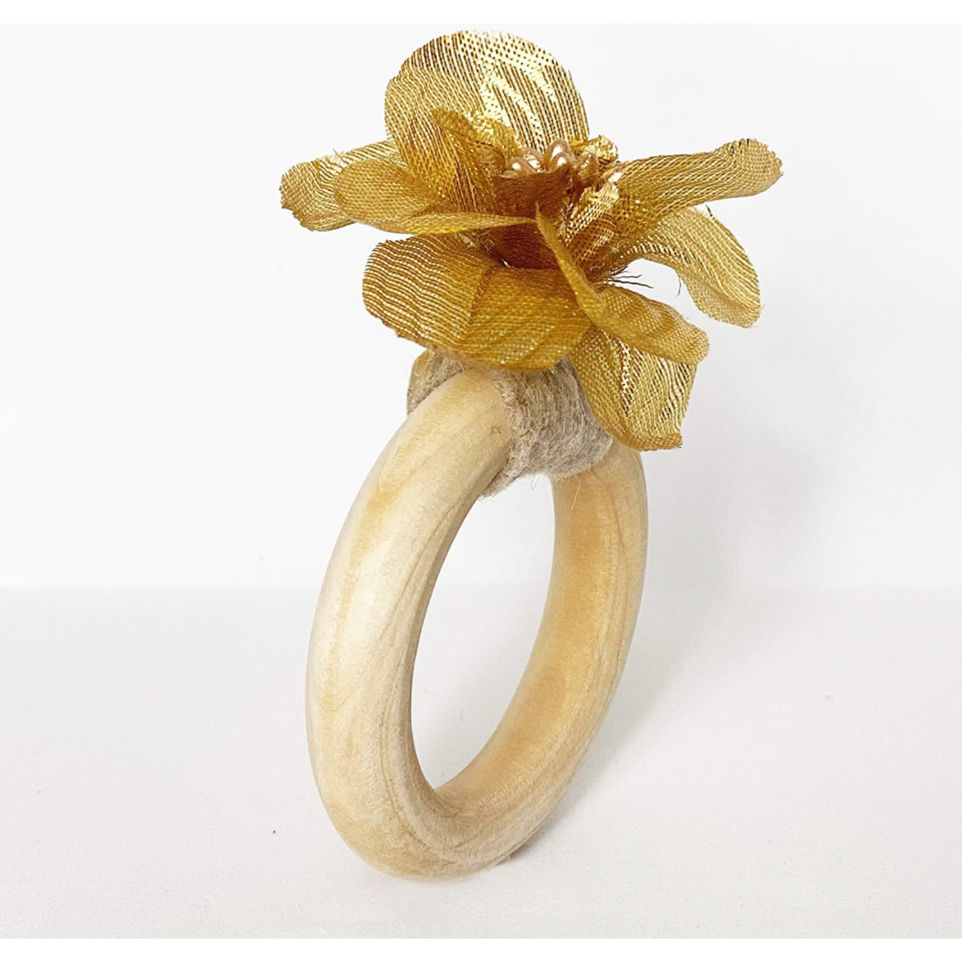 Bring a touch of elegance to your dining table with this set of 4 handmade gold flower napkin rings! These rustic napkin rings are made with natural wood rings and adorned with delicate golden fabric flowers that perfectly complement any napkin style. They're perfect for adding a chic, stylish touch to any occasion, whether it's a dinner party, brunch, wedding, or any other special event. Plus, because they're handcrafted in the US, you can trust that each one is made with care and attention to detail. Upgrade your table decor today with these beautiful gold flower napkin rings!