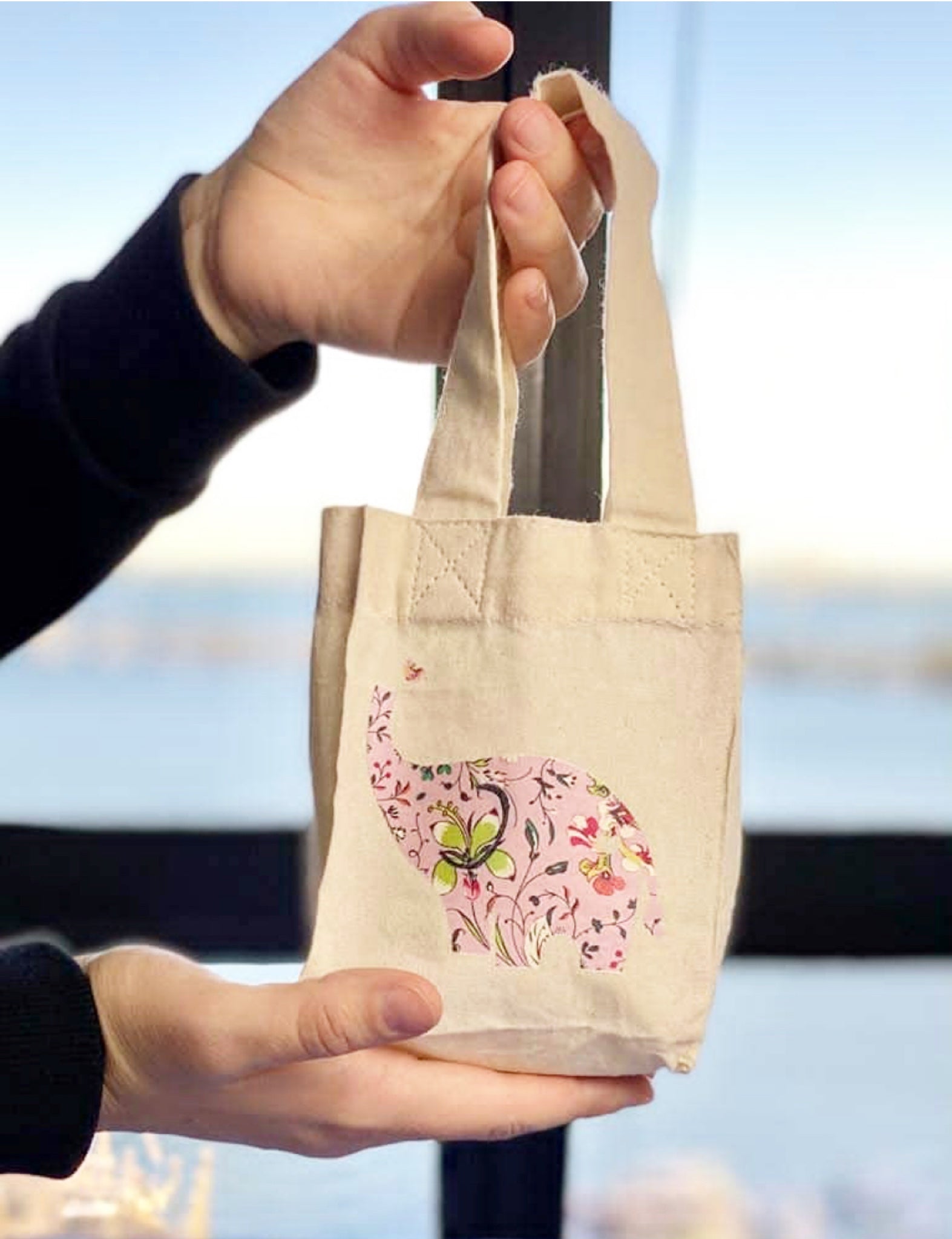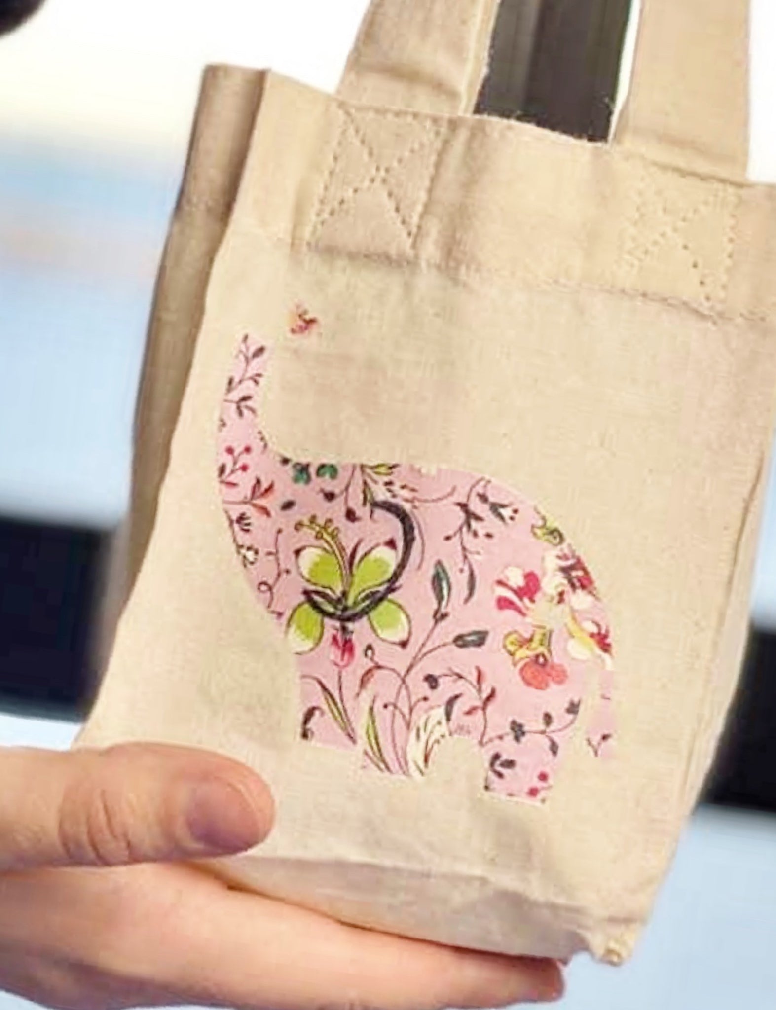 π 1 cloth bag and to carry the cup personalized with name and the elephant.