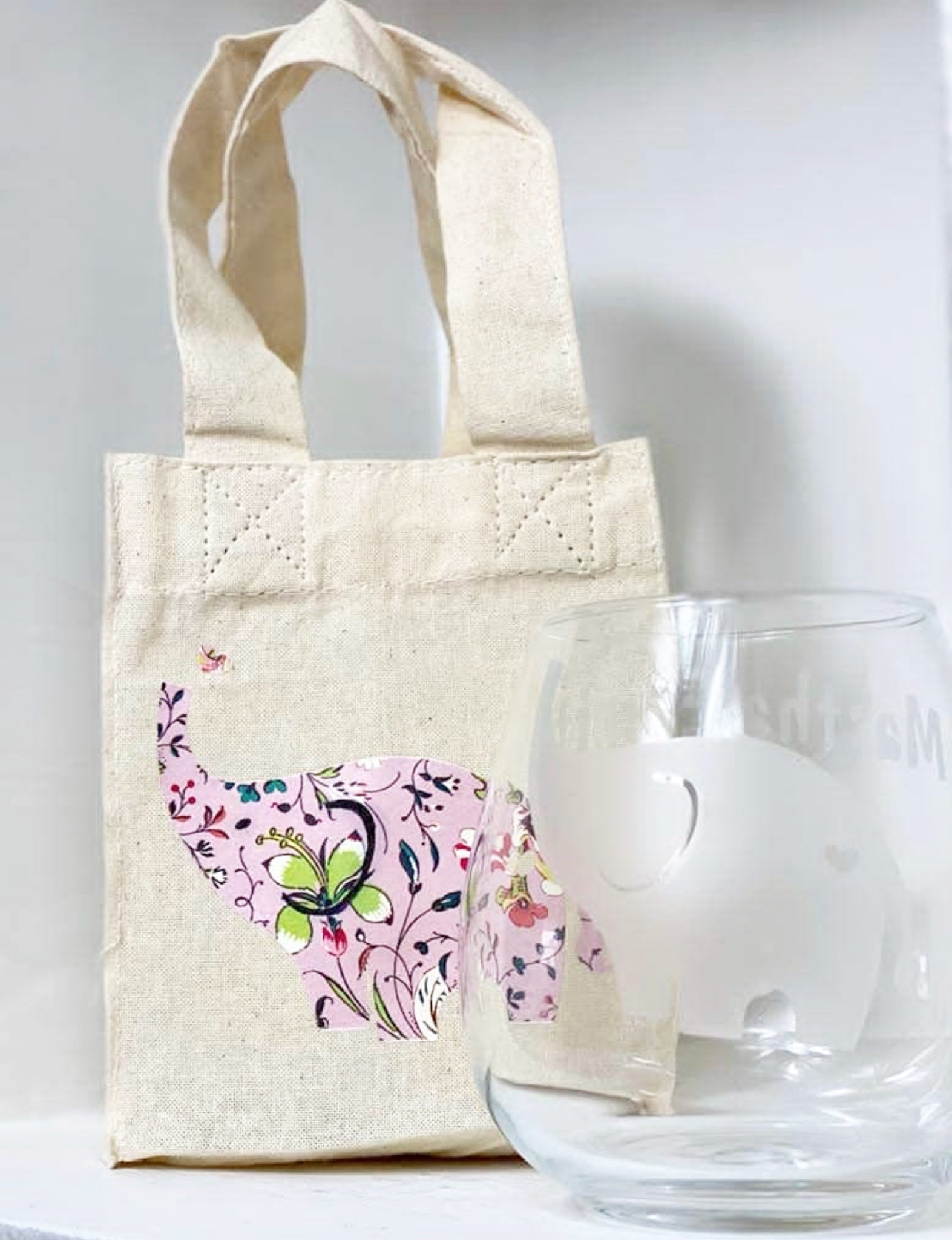 Looking for a special and lucky gift? Our Pink Elephant Personalized Gift Bag with Glass is perfect! The glass features a double print - one side with the cute pink elephant and the other with the name or message you choose. And it comes with a rustic cloth bag that can be personalized with the recipient's name and the elephant .Great for a beach stroll, a picnic in the park, or any special occasion. Plus, we've got you covered with gift packaging and a handwritten card. Don't see exactly what you want? Send us a message and we'll do our best to make it happen!