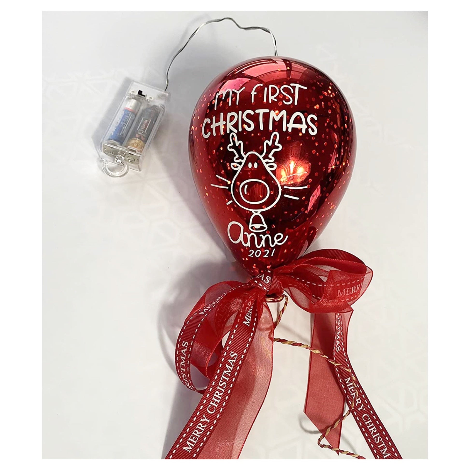 Celebrate the joy and wonder of your little one's first Christmas with our enchanting "My First Christmas" glass balloon This handcrafted gift is a heartwarming addition to any holiday decor, creating a magical ambiance with its battery-operated fairy lights.