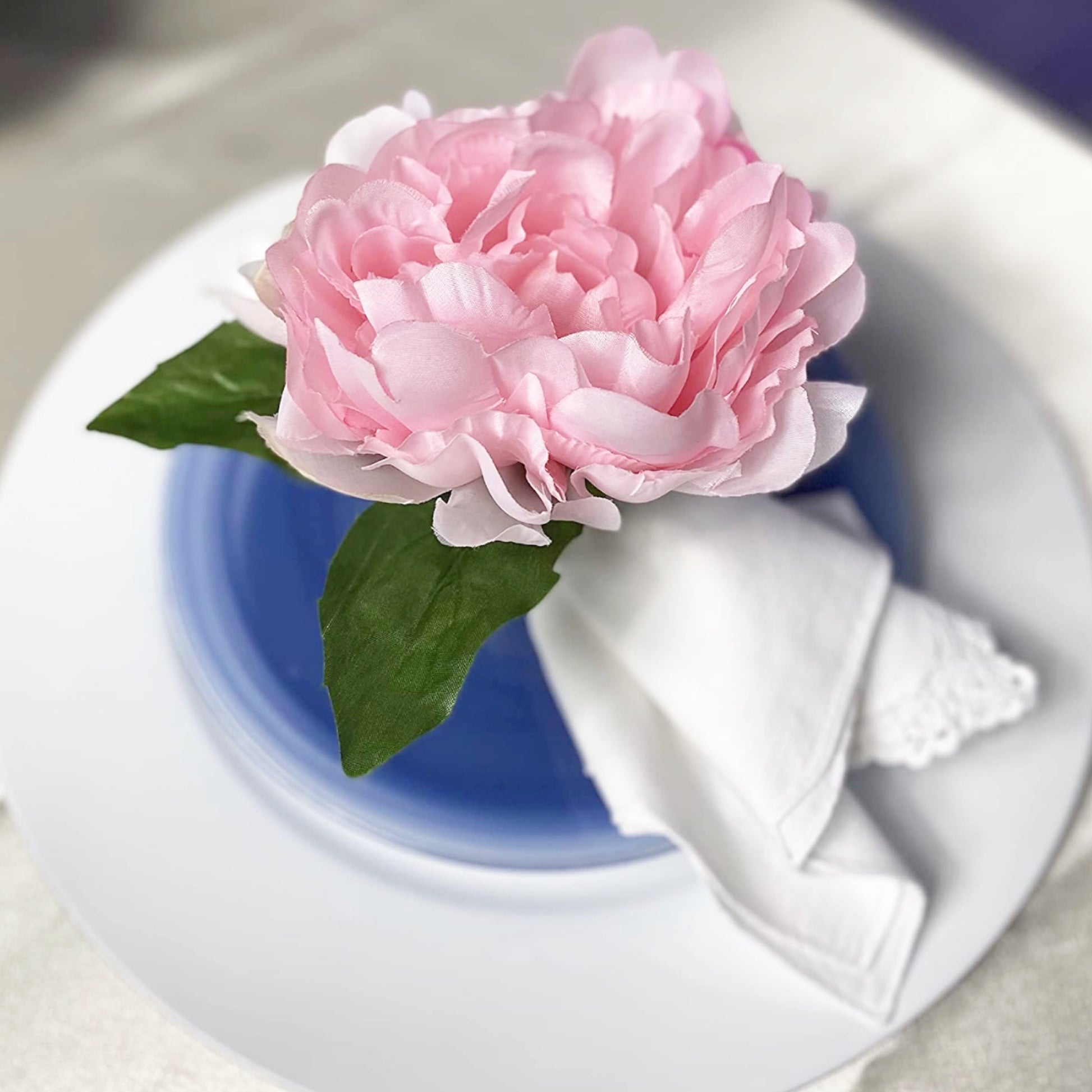 Introducing our lovely Pink Peony napkin rings with delicate green leaves! This handmade rustic napkin ring set comes with four rings, perfect for adding a touch of elegance to your spring table setting. Each napkin ring is carefully crafted in the US with natural materials, making them a great addition to your rustic decor collection. Bring the beauty of nature to your happy spring table with these charming floral napkin rings!