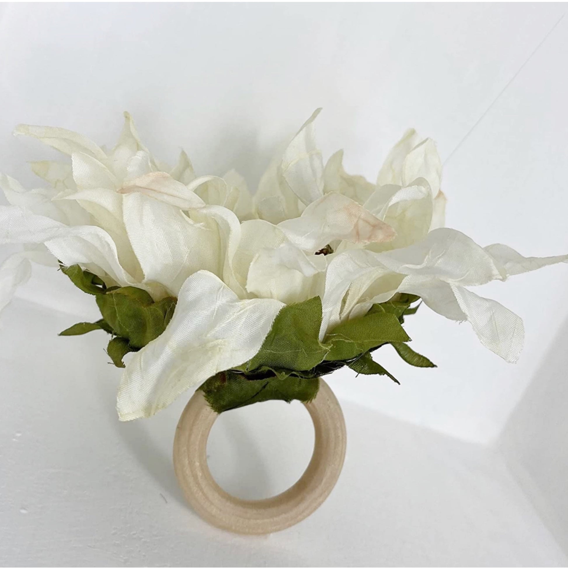 Brighten up your dining room with a touch of sunshine! Our handmade sunflower napkin rings are just what you need to add a delicate and rustic charm to your table decor. Each set includes 4 napkin rings crafted from natural wood ring, and adorned with a delicate off white sunflower made of fine fabric.